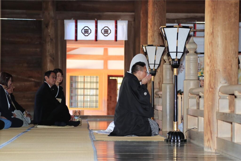 天気にも恵まれた秋晴れの日、大山祇神社にて神前式を挙げることができ、夫婦ともに生涯忘れることのない、かけがえのない一日となりました。
