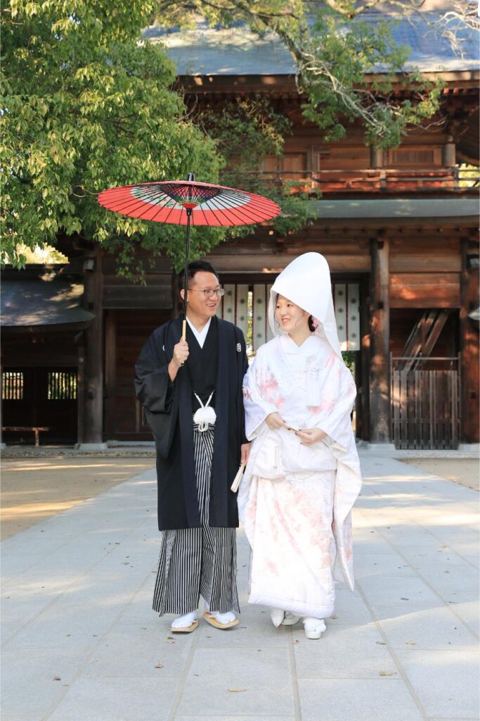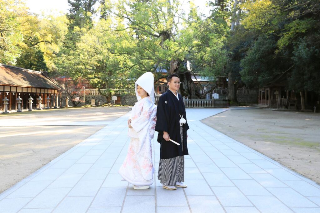 挙式後に境内で撮影