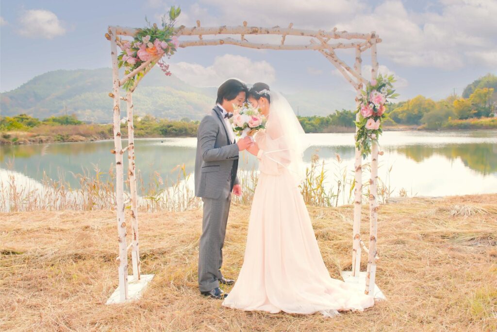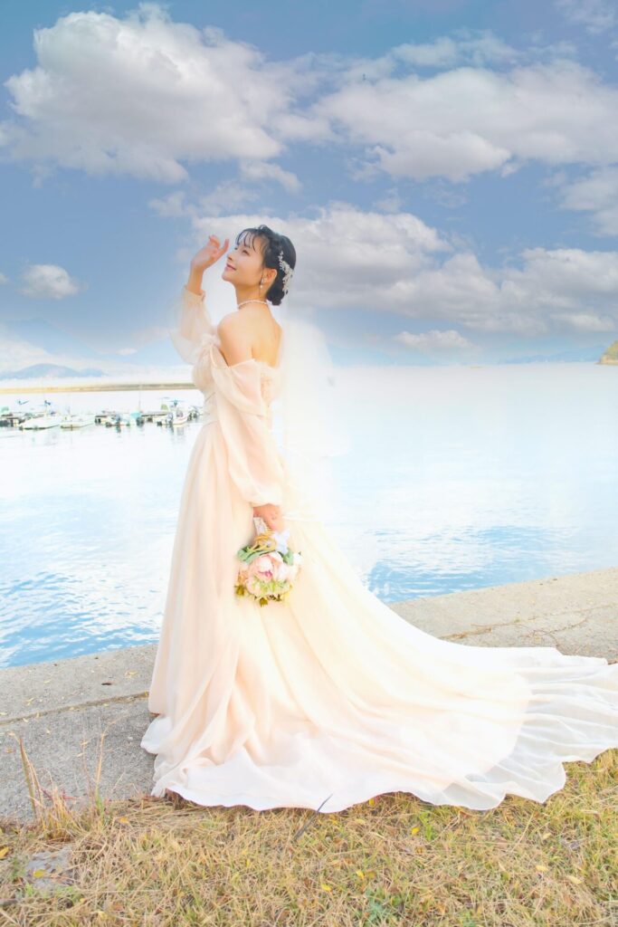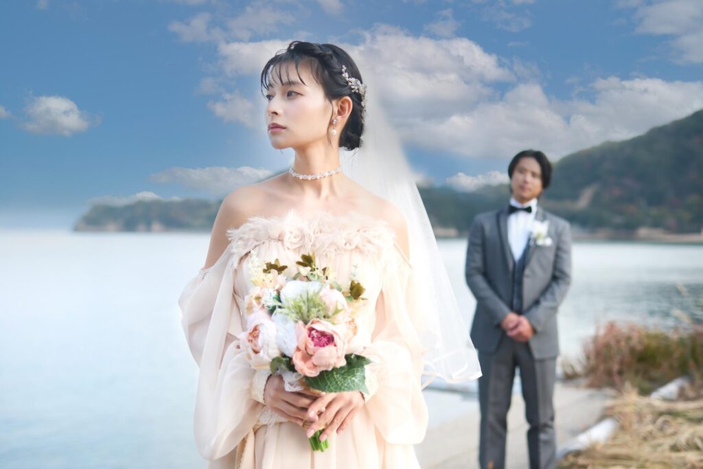 婚禮攝影方案,包含入住我們三間島波旅館:玉、海老與鷺。玉是座歷史悠久的江戶時期古宅,曾有勝海舟下榻於此,提供日式現代風格攝影。海老與鷺則能捕捉海景攝影的絕佳畫面。