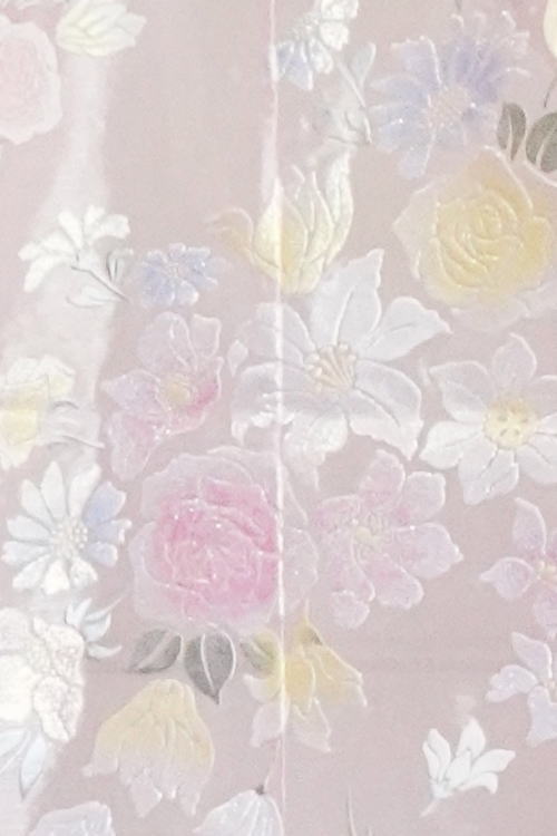 4 打掛白ピンク 孔雀花刺繍
