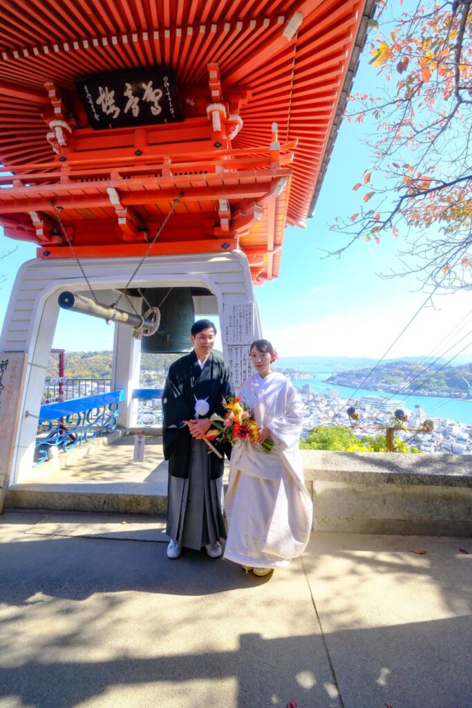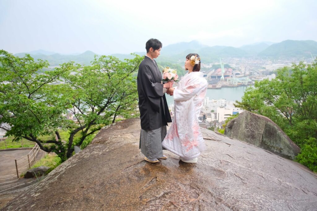 歴史的な寺社仏閣が立ち並び和モダンな尾道は千光寺、猫の細道、ポンポン岩、天寧寺、尾道水道、艮神社、浄土寺、商店街など白無垢・色打掛の和装が映える街。尾道でのフォトウェディング・前撮り実績NO.1のしまなみ婚が尾道で撮影したお客様カップルの写真をご覧ください。